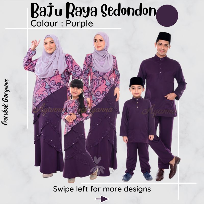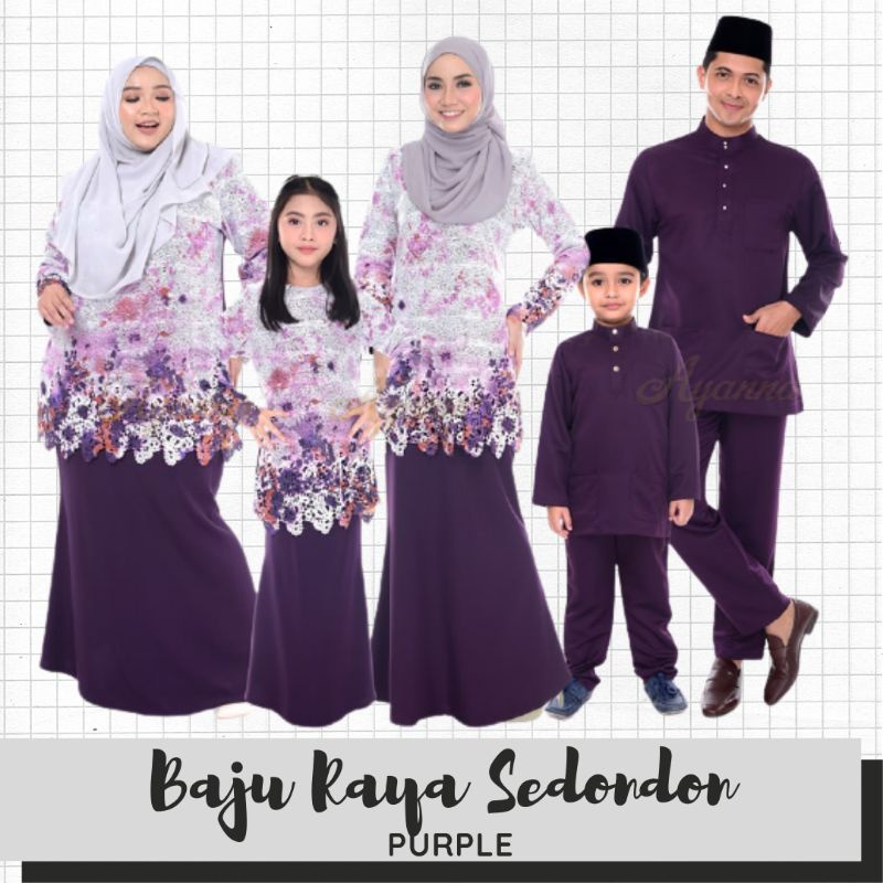 Baju Raya Sedondon Tema Warna Purple Ungu Gelap Set Family Ayah Ibu Anak Baju Kurung Baju Melayu Kurta Rayafr Shopee Malaysia
